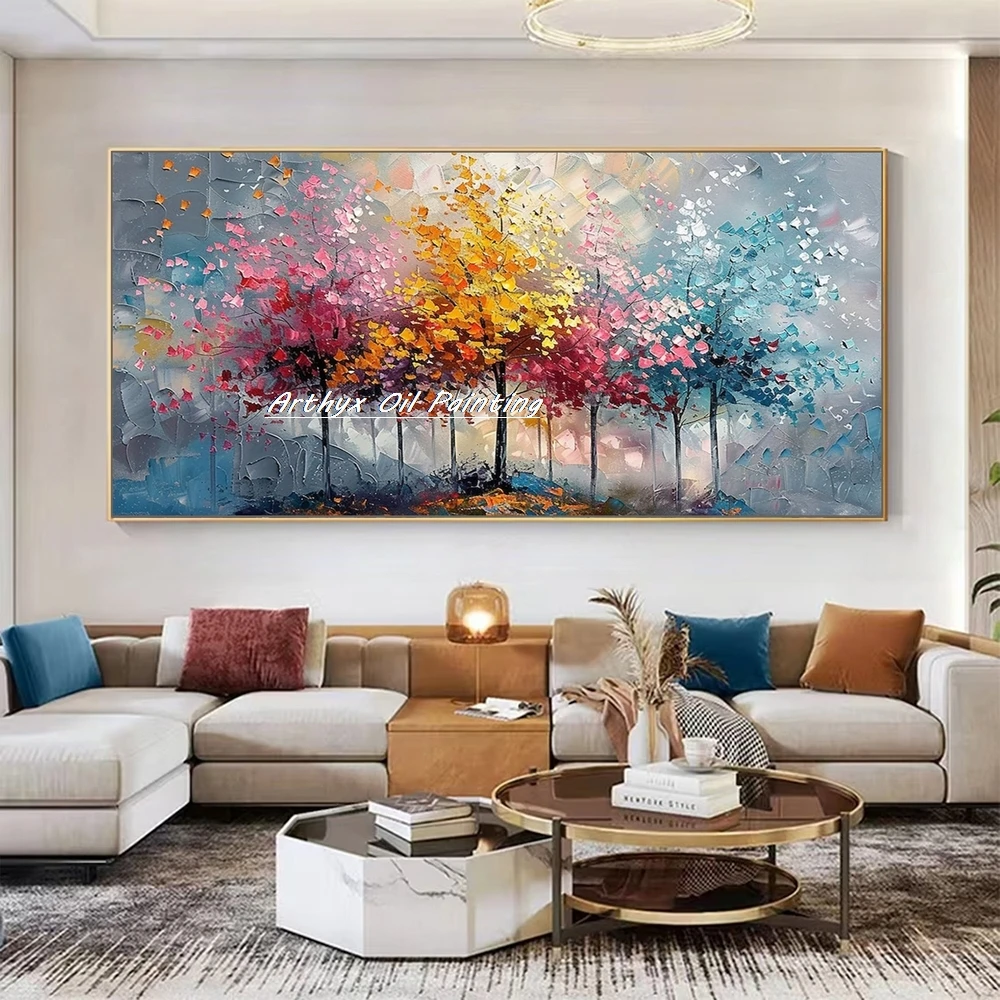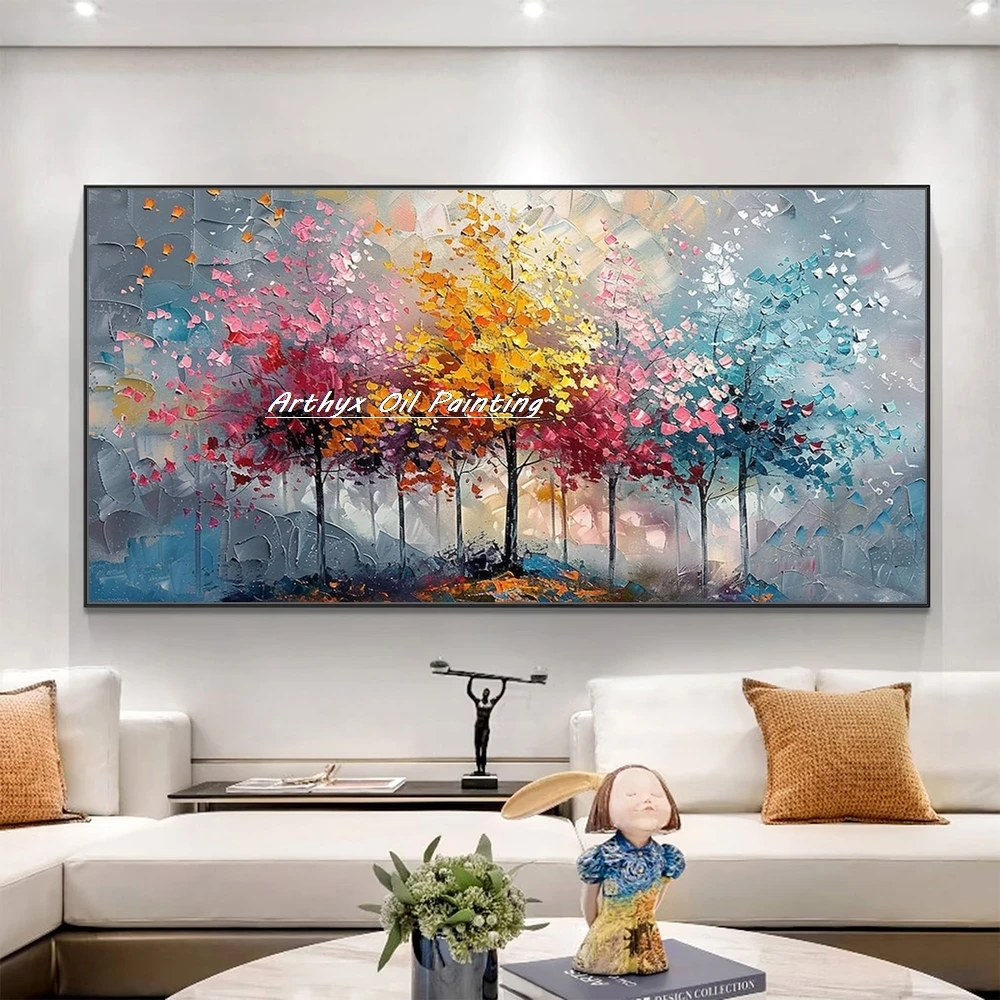Arthyx,Large Handpainted Palette Knife Tree Oil Painting on Canvas,Modern Abstract Landscape Art Poster,Wall Pictures,Home Decor