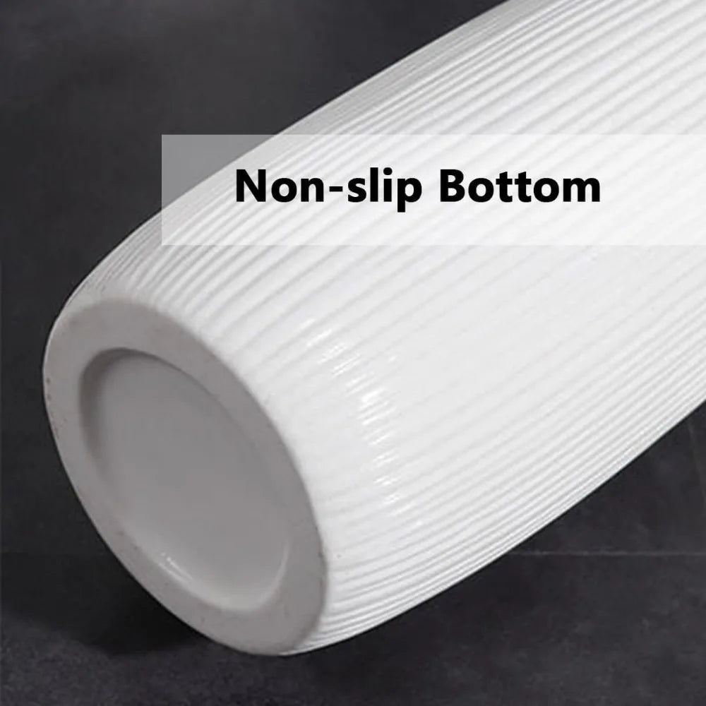 - Material: This ceramic big vase is made of premium ceramic material, the bottom is designed with smooth rough glaze, non-slip and good stability. The vase is finished with a smooth glossy white glaze and a unique lines design. No holes in the bottom of the vase to hold water and flowers